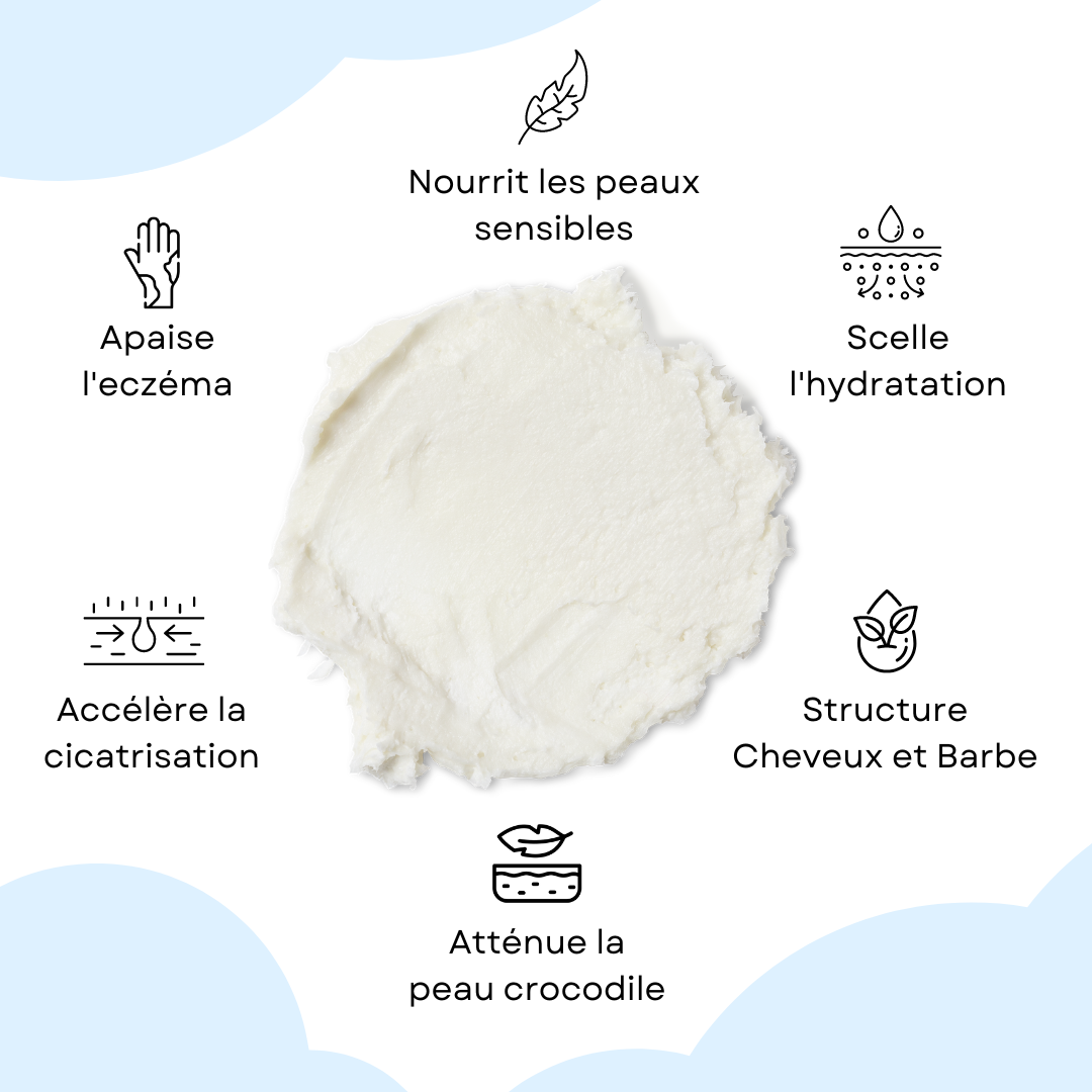 Nourrissez votre peau avec notre chantilly légère et apaisante. Idéale pour le visage, le corps et les cheveux.